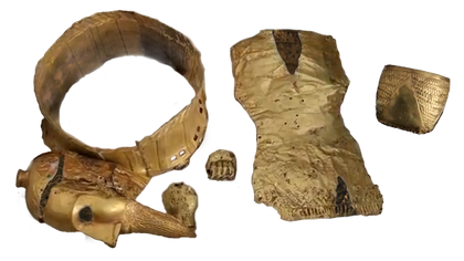 Les artefacts ci-dessus ne sont pas tout ce que ce chasseur de trésor a trouvé. Outre les éléments d'armure et le masque, il a trouvé des récipients en or de grande valeur. Ces récipients sont très probablement des bols utilisés à des fins rituelles ou décoratives, par exemple pour ranger de petits objets de valeur ou comme bols sonores. Les récipients ont été fabriqués à la main et présentent des décorations impressionnantes.
